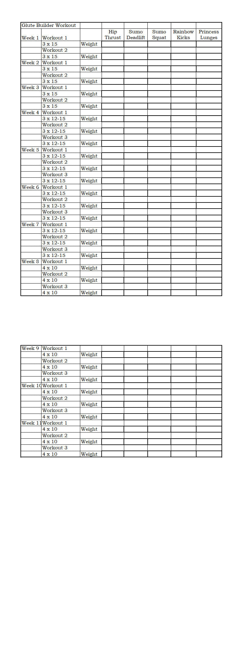 Transform your glutes in just 11 weeks with the Wellness With Erika Glute Builder! This expertly designed program guides you through targeted exercises and proven techniques to strengthen and shape your glute muscles effectively. This plan delivers a clear, structured approach to achieve lasting results. Tailored for consistent progress, it helps you build confidence and power with every session. The provided weight tracker eases you into progressive overload, proven to help increase glute size over time.